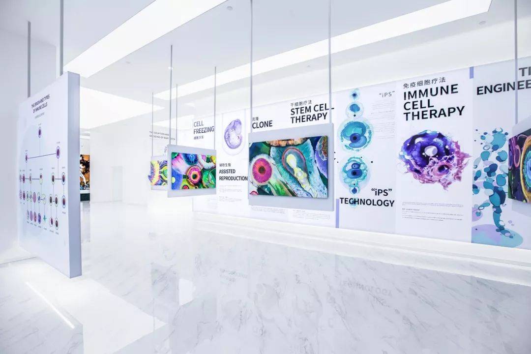 视觉与材质融合:运用冷色调聚焦光、生物荧光艺术装置及哑光金属材质,营造未来感光影剧场;参数化设计的金属网格隐喻细胞结构,提升空间美学与科技感。