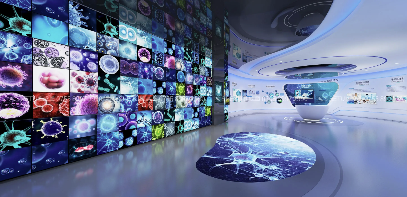 当科技展馆成为生物医药领域的重要展示窗口,干细胞展厅设计正在突破传统展示的局限。在这场关于生命科学的视觉革命中,思威图数字用独特的设计语言,构建起连接尖端科技与公众认知的桥梁。