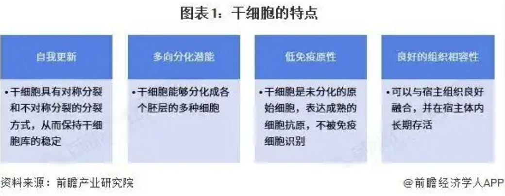 干细胞具有自我更新、多向分化潜能、低免疫原性和良好的组织相容性等特点。