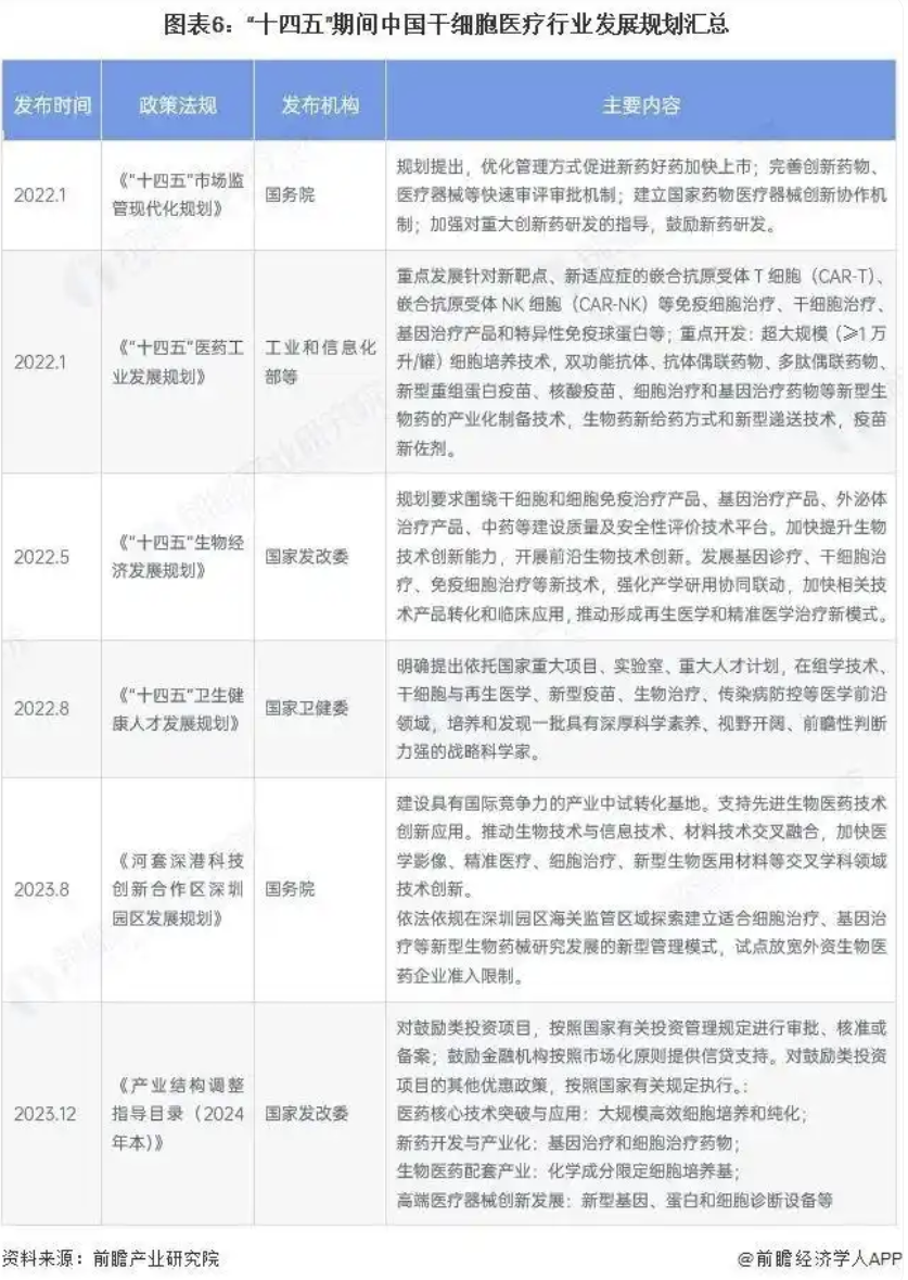 细胞疗法是当今医学研究最前沿、最热门的领域之一,研究者们也在该领域取得了丰硕的成果。同时,干细胞医疗被相继写进《“十四五”国家规划》和《“健康中国2030”规划纲要》。其中《“十四五”国家规划》指出,重点发展干细胞治疗、特异性免疫球蛋白、基因治疗产品、免疫细胞治疗等。