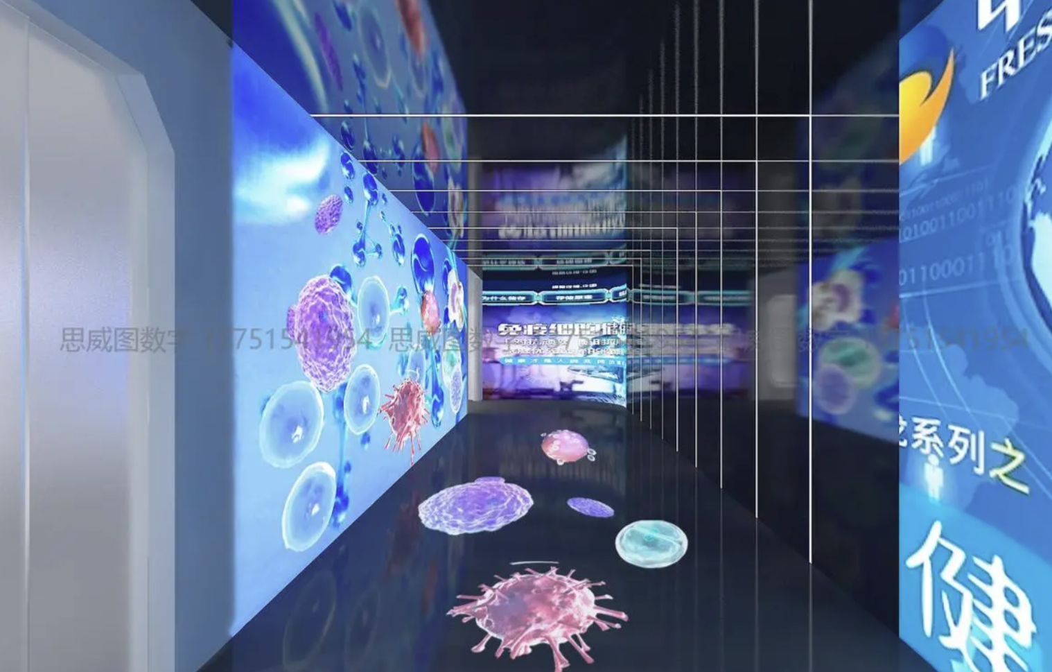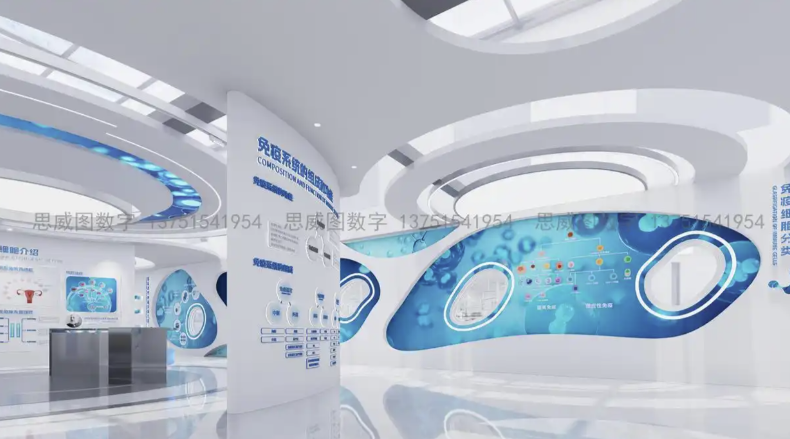 沿着蜿蜒的螺旋形走廊,LED 灯带模拟着细胞分裂的轨迹。展墙上的显微影像放大装置,将培养皿中的干细胞活动放大千倍呈现。重点展项采用分层式设计:底层展示冷冻保存的脐带血样本,中层循环播放实验室操作视频,顶层布置 VR 显微观察设备,形成立体化的认知体系。