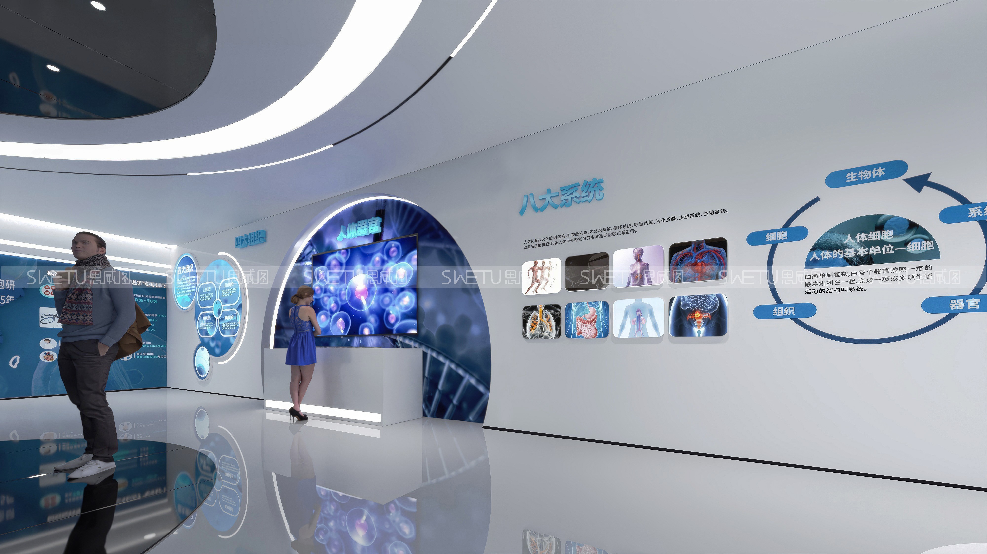细胞科技馆(200㎡):通过互动展示与科普教育,系统呈现细胞技术与生命科学前沿成果,采用科技+互动展示模式,让深奥的生命科学知识变得直观易懂 ;